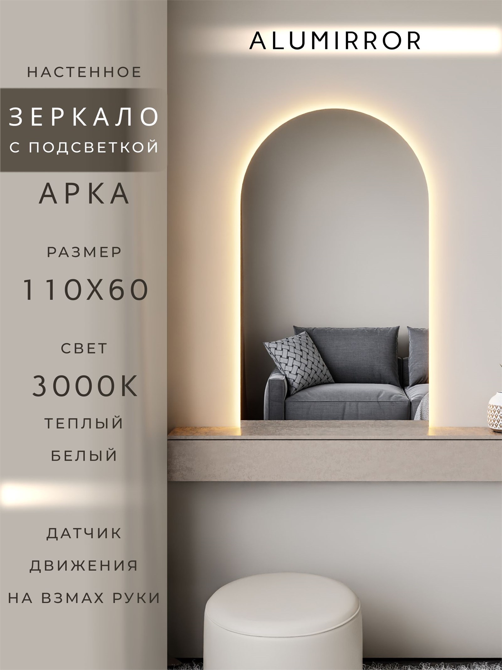 Зеркало настенное 110х60 см. теплый свет 3000К арочное с подсветкой М5 ALUMIRROR