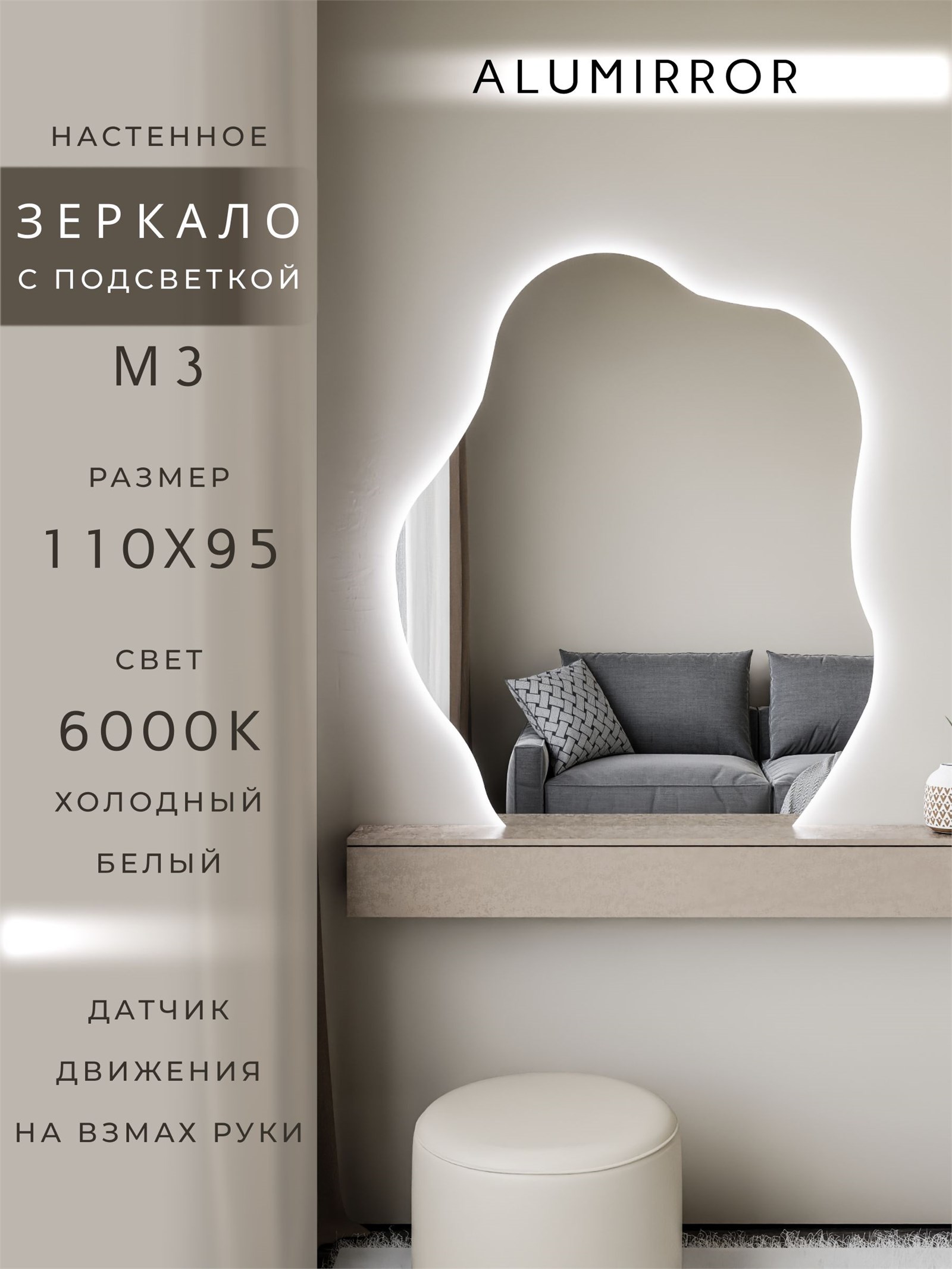 Зеркало настенное 110х95 см. холодный свет 6000К фигурное с подсветкой М3 ALUMIRROR