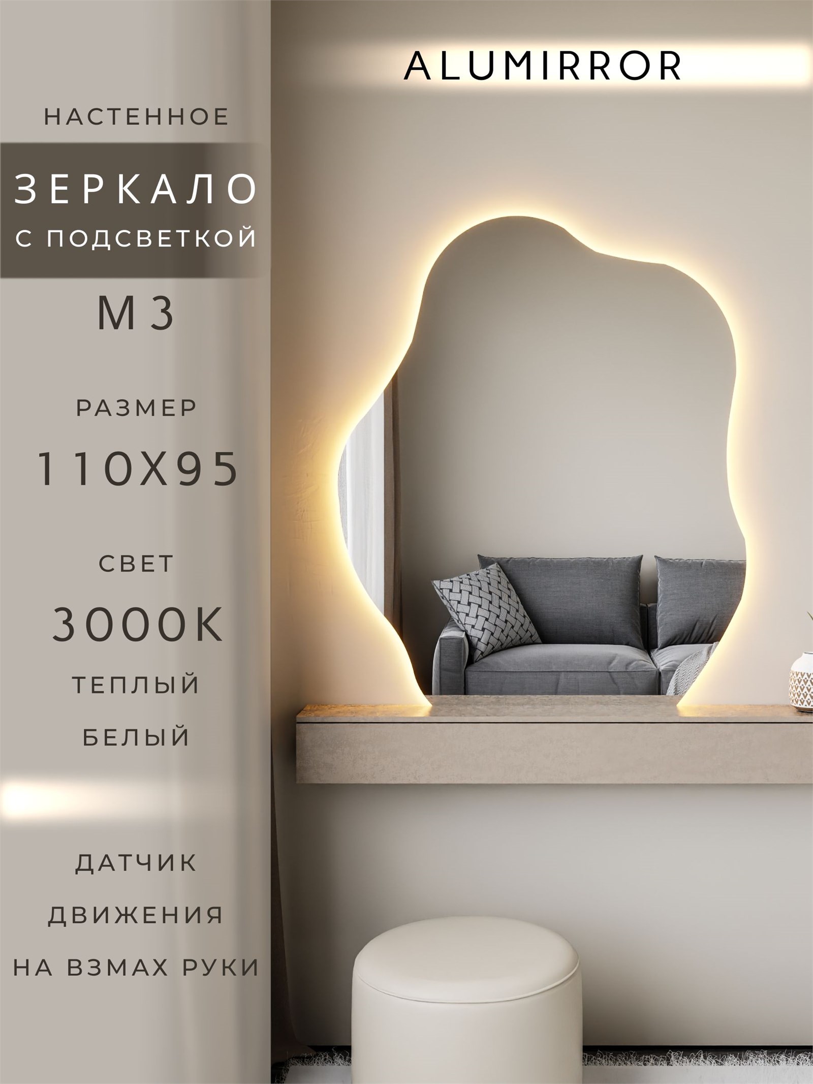 Зеркало настенное 110х95 см. теплый свет 3000К фигурное с подсветкой М3 ALUMIRROR