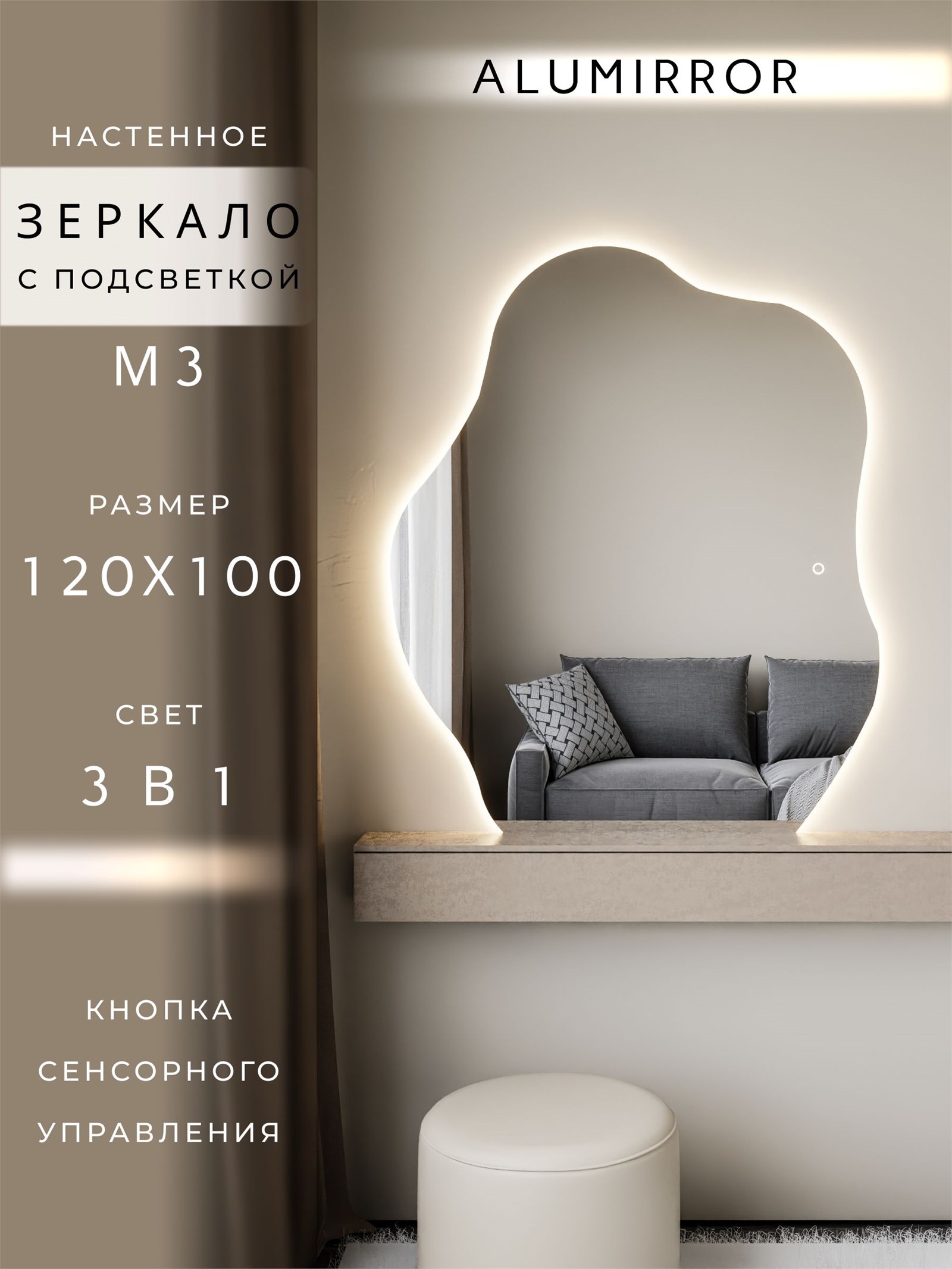 Зеркало настенное 120х100 см. сенсорное фигурное с подсветкой М3 ALUMIRROR