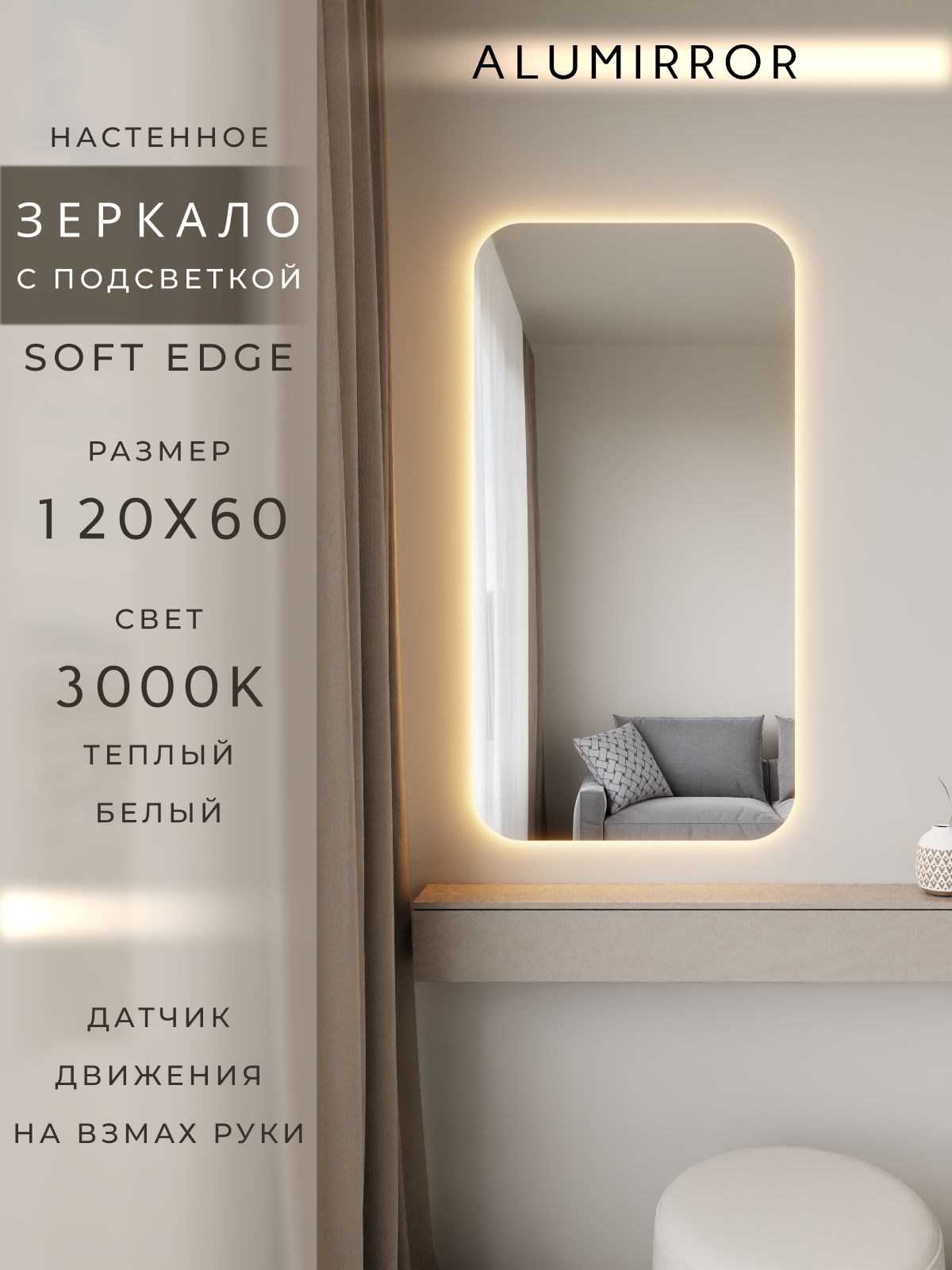 Представляем вашему вниманию роскошное интерьерное зеркало с подсветкой от бренда ALUMIRROR – идеальное решение для создания стильного и функционального пространства в вашем доме.