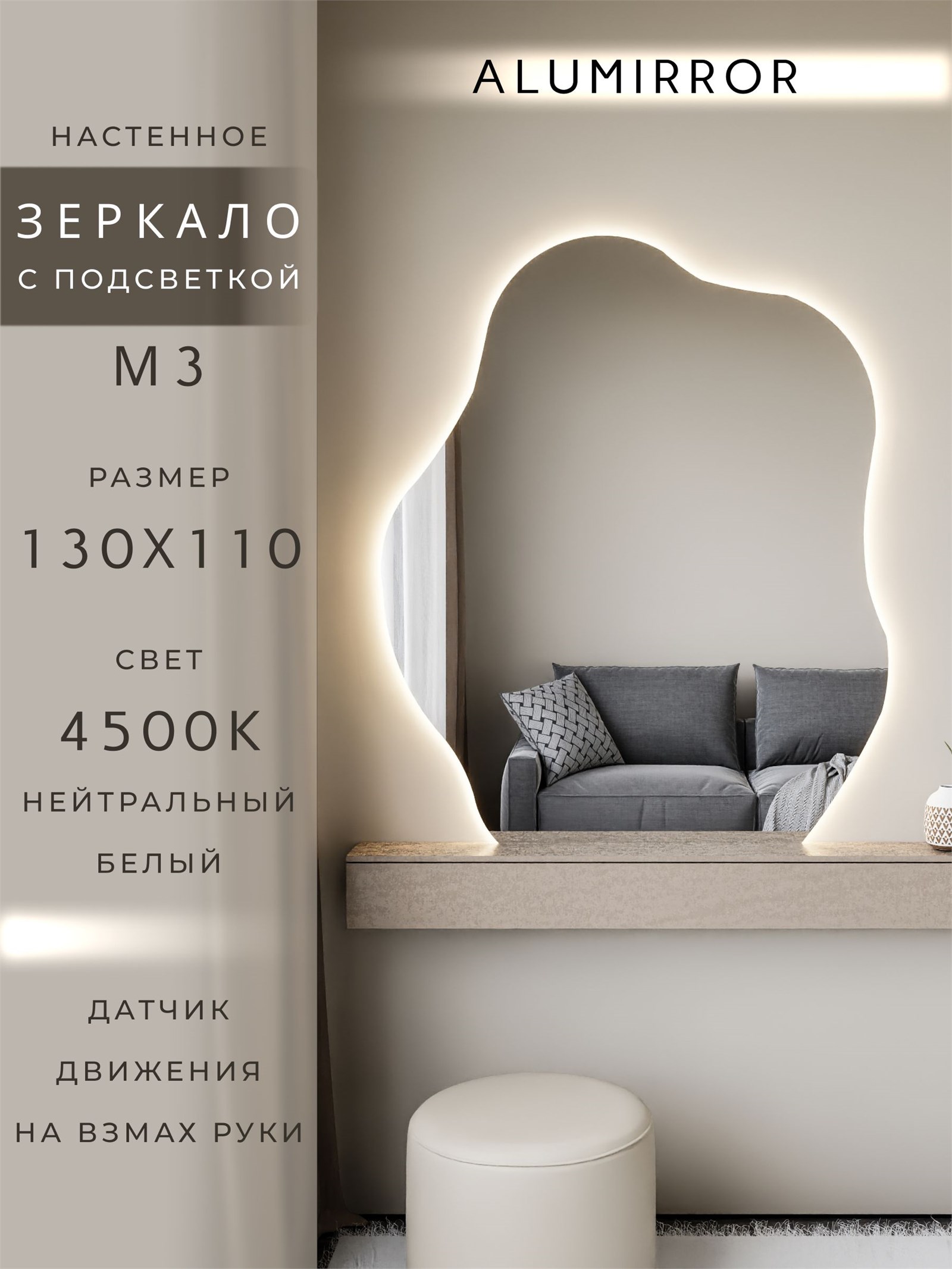 Представляем вам уникальное зеркало фигурное с подсветкой Alumirror — идеальное решение для вашего интерьера! Это настенное зеркало не только станет стильным акцентом в любом помещении, но и выполнит практическую функцию благодаря современным технологиям.
