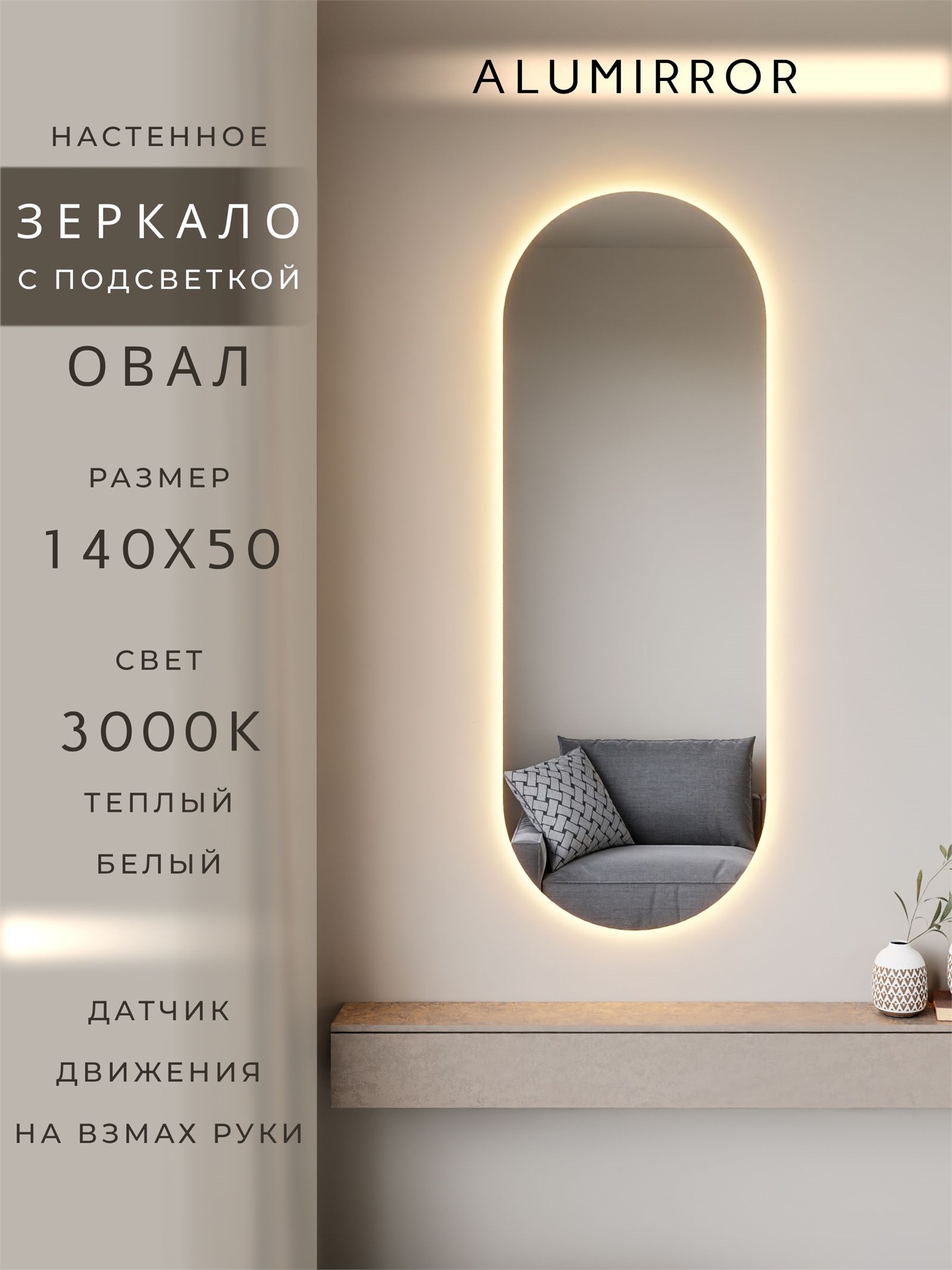 Зеркало настенное 140х50 см. теплый свет 3000К овальное с подсветкой М6 ALUMIRROR