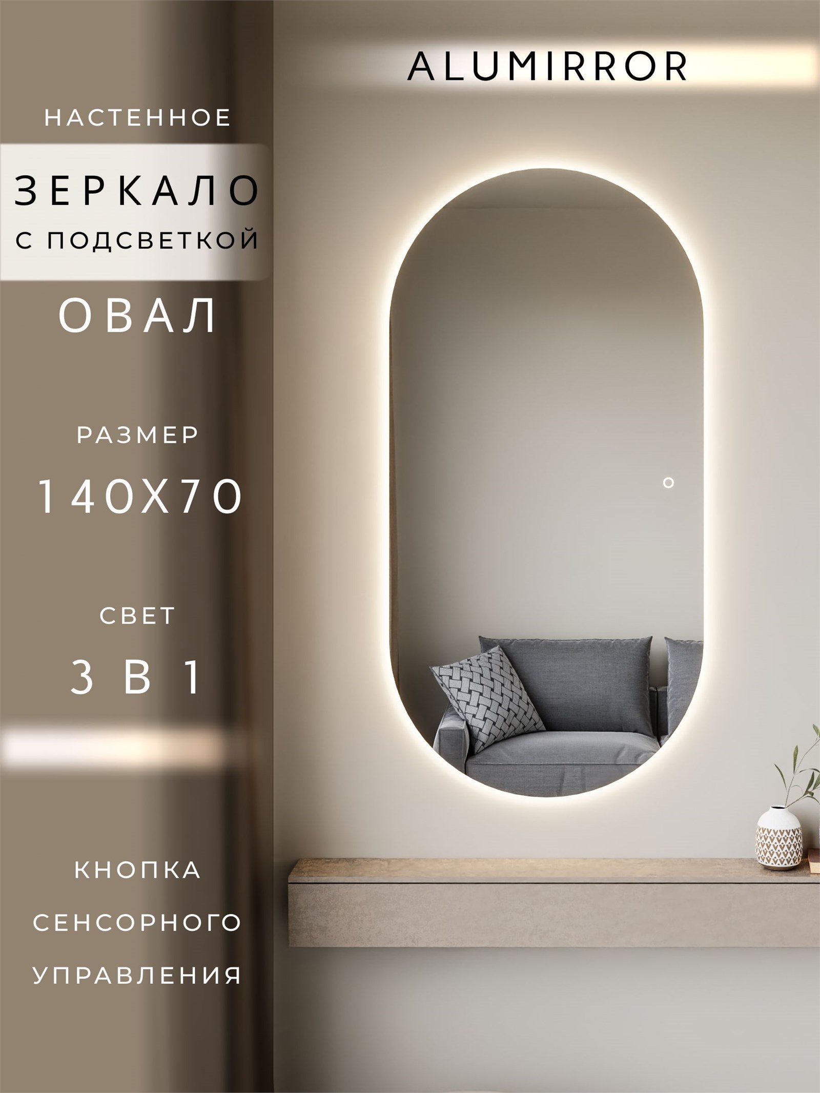 Зеркало настенное 140х70 см. сенсорное овальное с подсветкой М6 ALUMIRROR