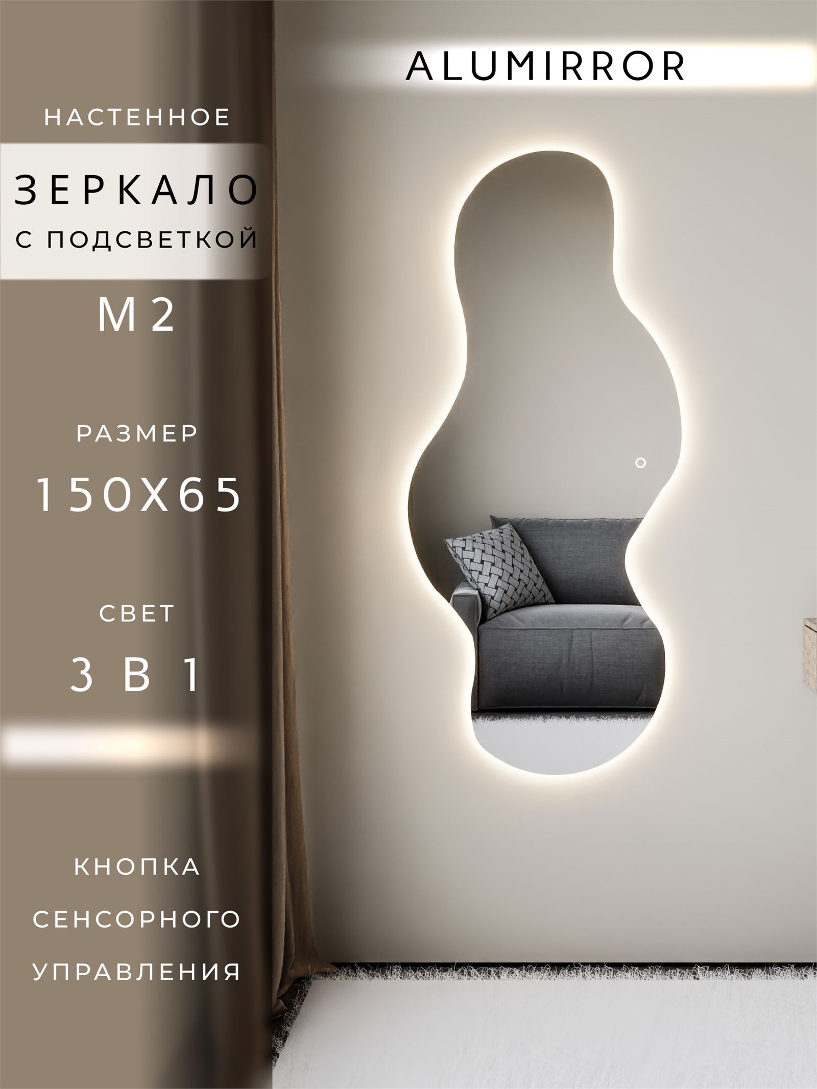 Зеркало настенное 150х65 см. сенсорное фигурное с подсветкой М2 ALUMIRROR
