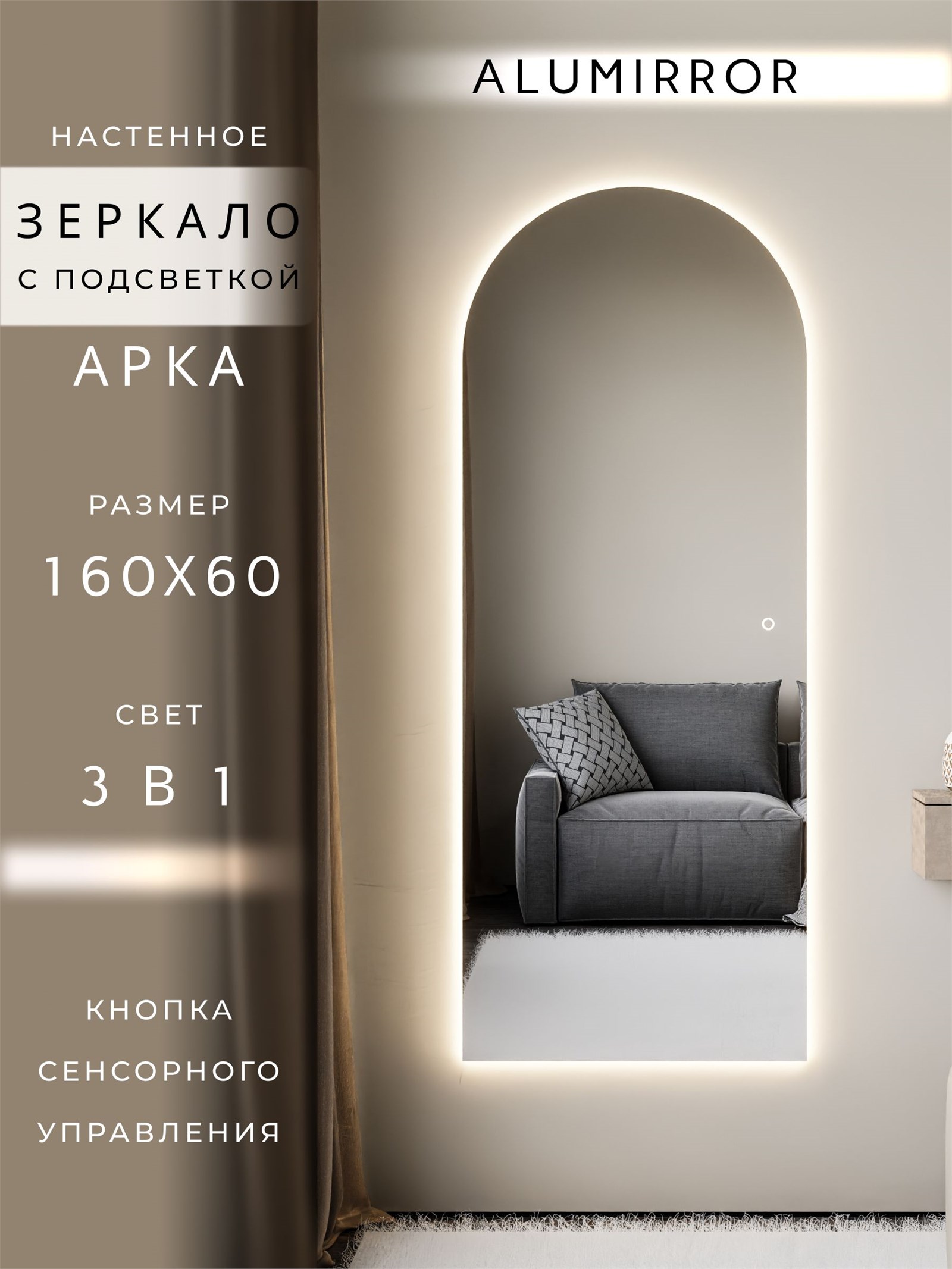Зеркало настенное 160х60 см. сенсорное арочное с подсветкой М5 ALUMIRROR