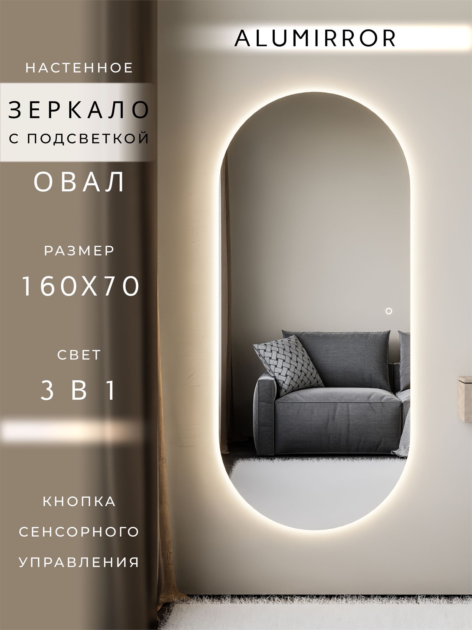 Зеркало настенное 160х70 см. сенсорное овальное с подсветкой М6 ALUMIRROR