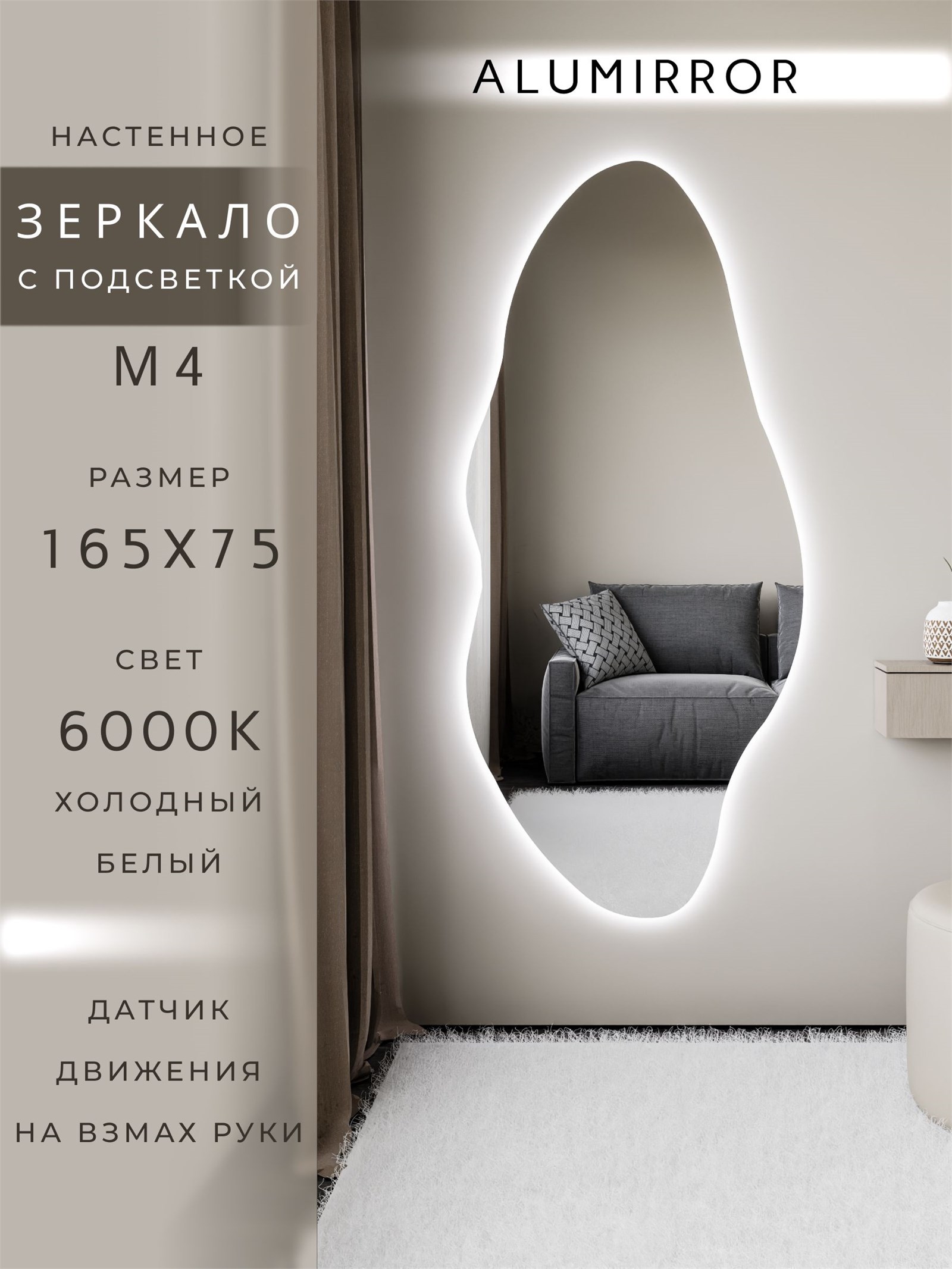 Зеркало настенное 165х75 см. холодный свет 6000К фигурное с подсветкой М4 ALUMIRROR
