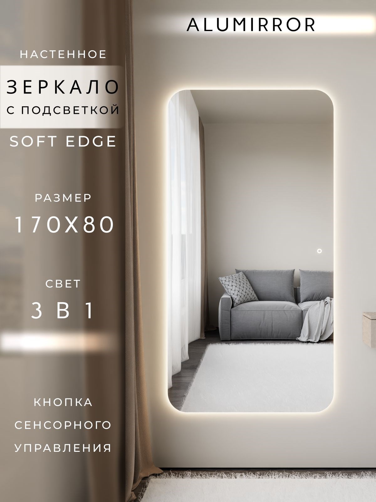 Зеркало настенное 170х80 см. мягкий квадрат ALUMIRROR с подсветкой сенсорное