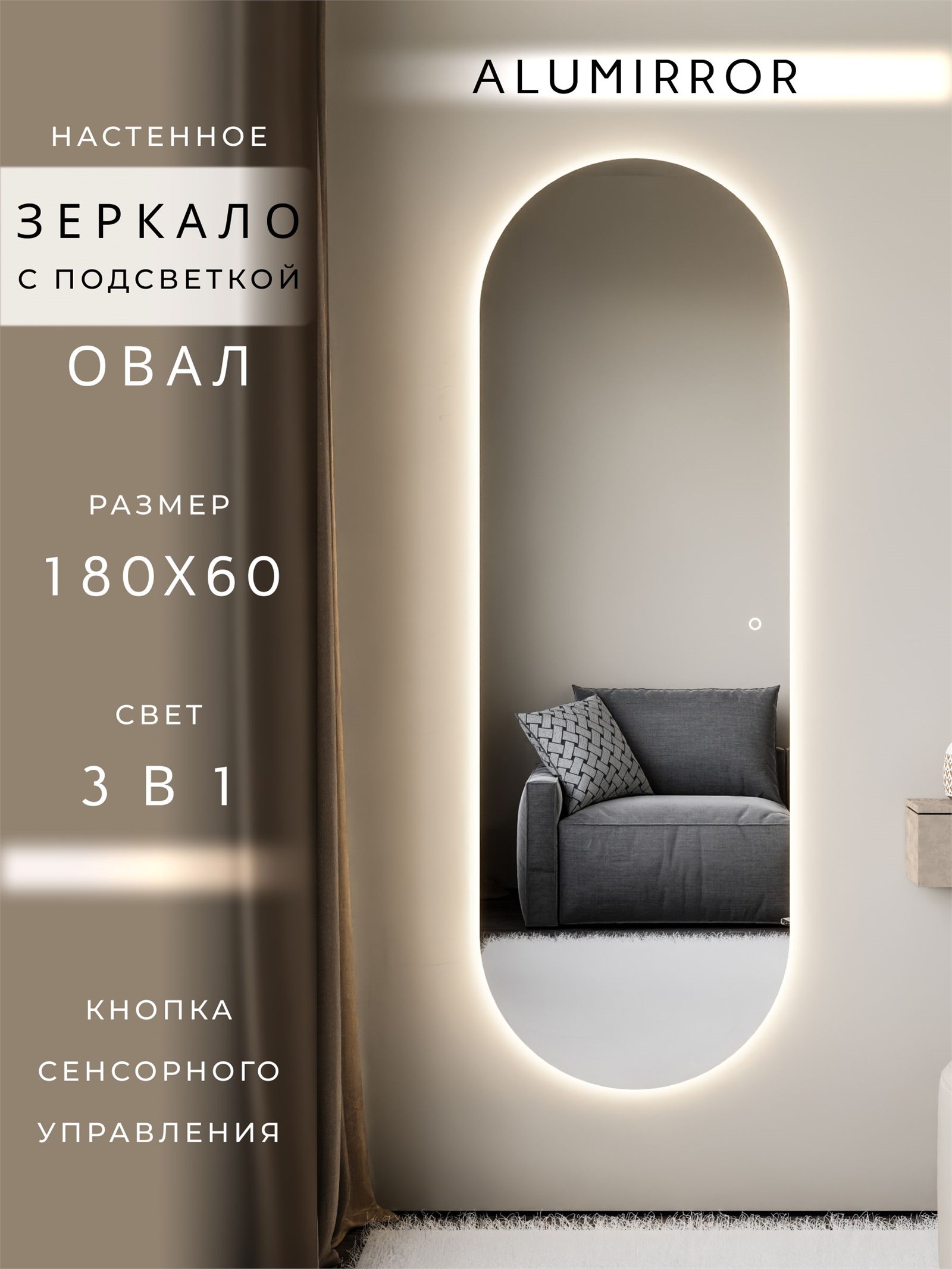 Зеркало настенное 180х60 см. сенсорное овальное с подсветкой М6 ALUMIRROR