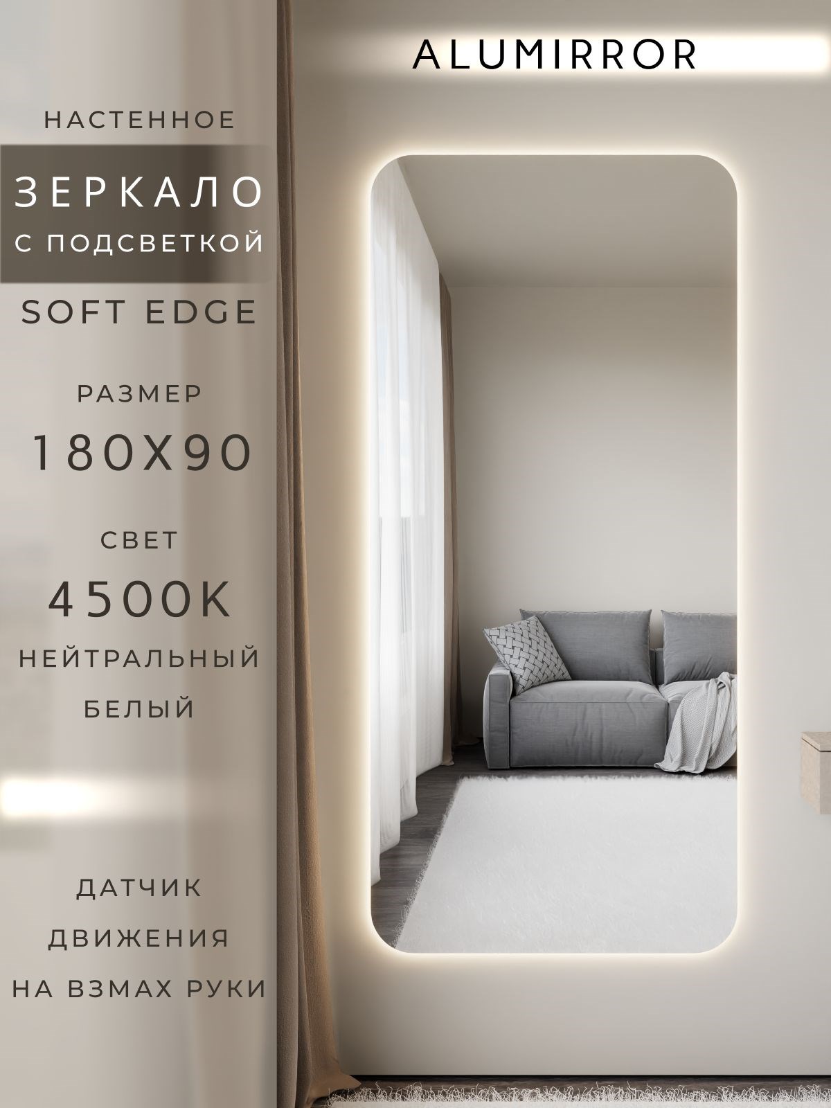 Зеркало настенное 180х90 см. мягкий квадрат ALUMIRROR с подсветкой нейтральный свет 4500К