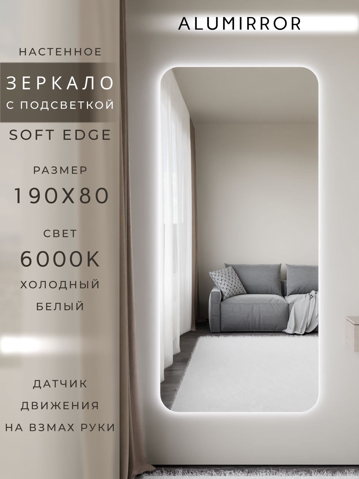Зеркало настенное 190х80 см. мягкий квадрат ALUMIRROR с подсветкой холодный свет 6000К