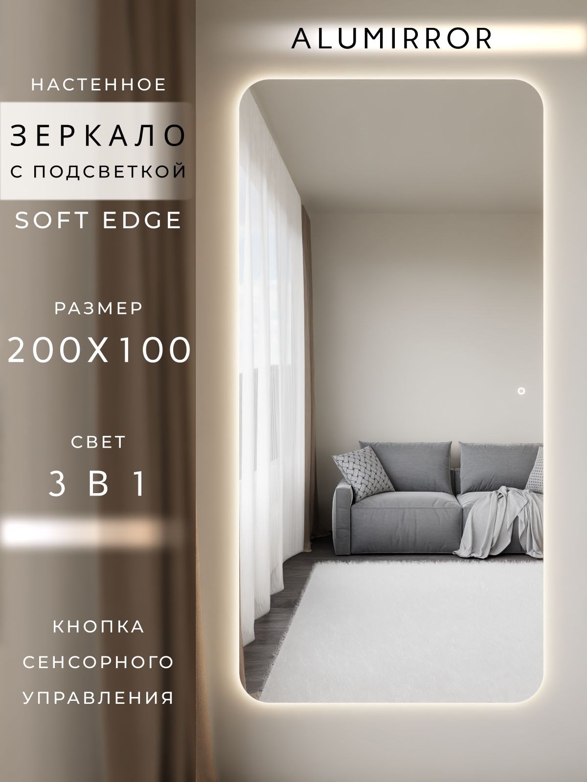 Зеркало настенное 200х100 см. мягкий квадрат ALUMIRROR с подсветкой сенсорное