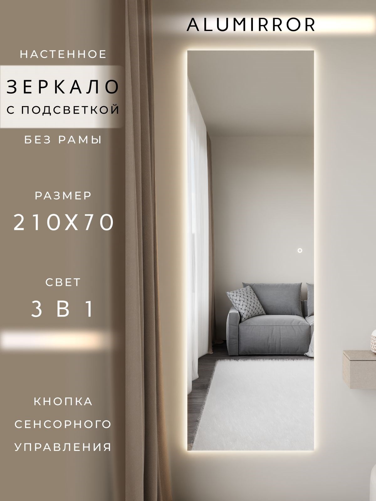 Зеркало настенное 210х70 см с подсветкой сенсорное без рамы интерьерное ALUMIRROR