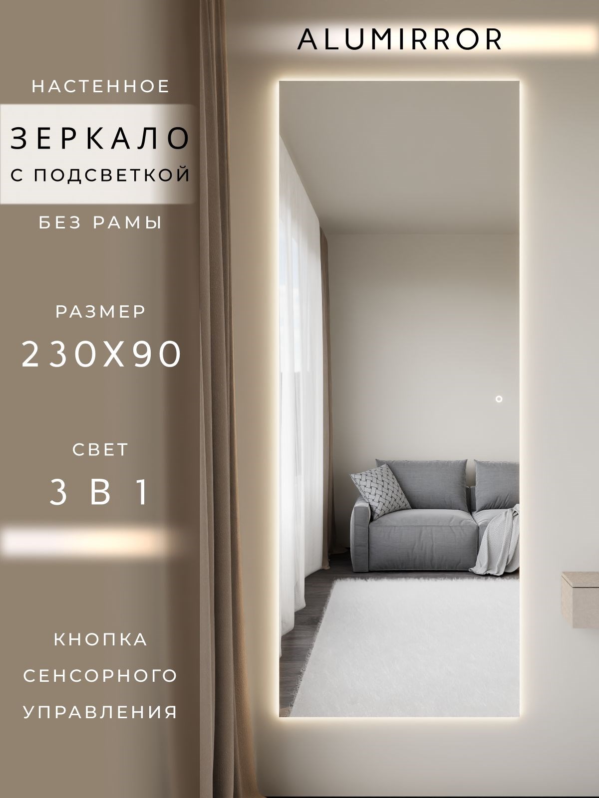 Зеркало настенное 230х90 см с подсветкой сенсорное без рамы интерьерное ALUMIRROR