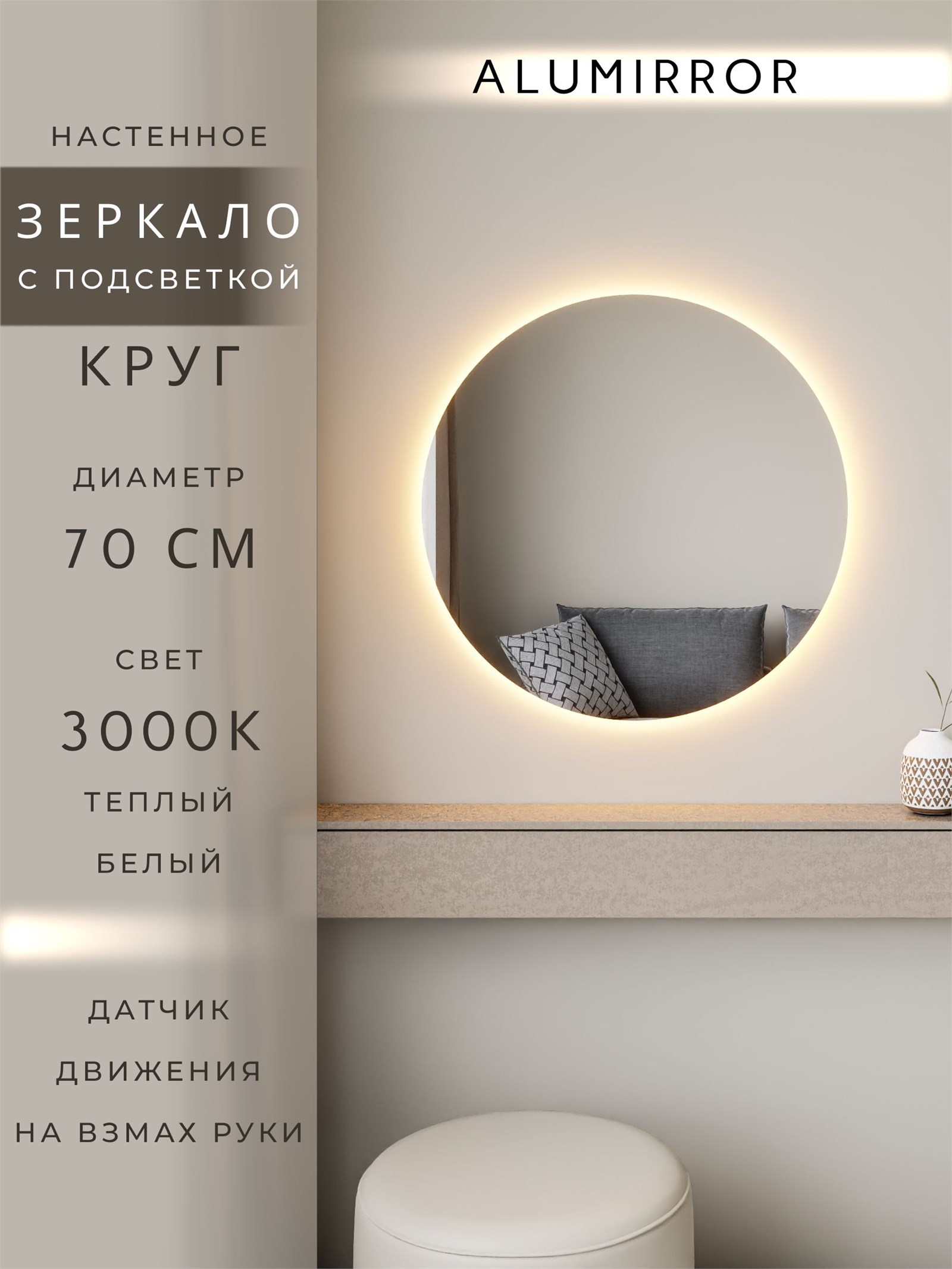 Зеркало настенное 70х70 теплый свет 3000К круглое с подсветкой М7 ALUMIRROR