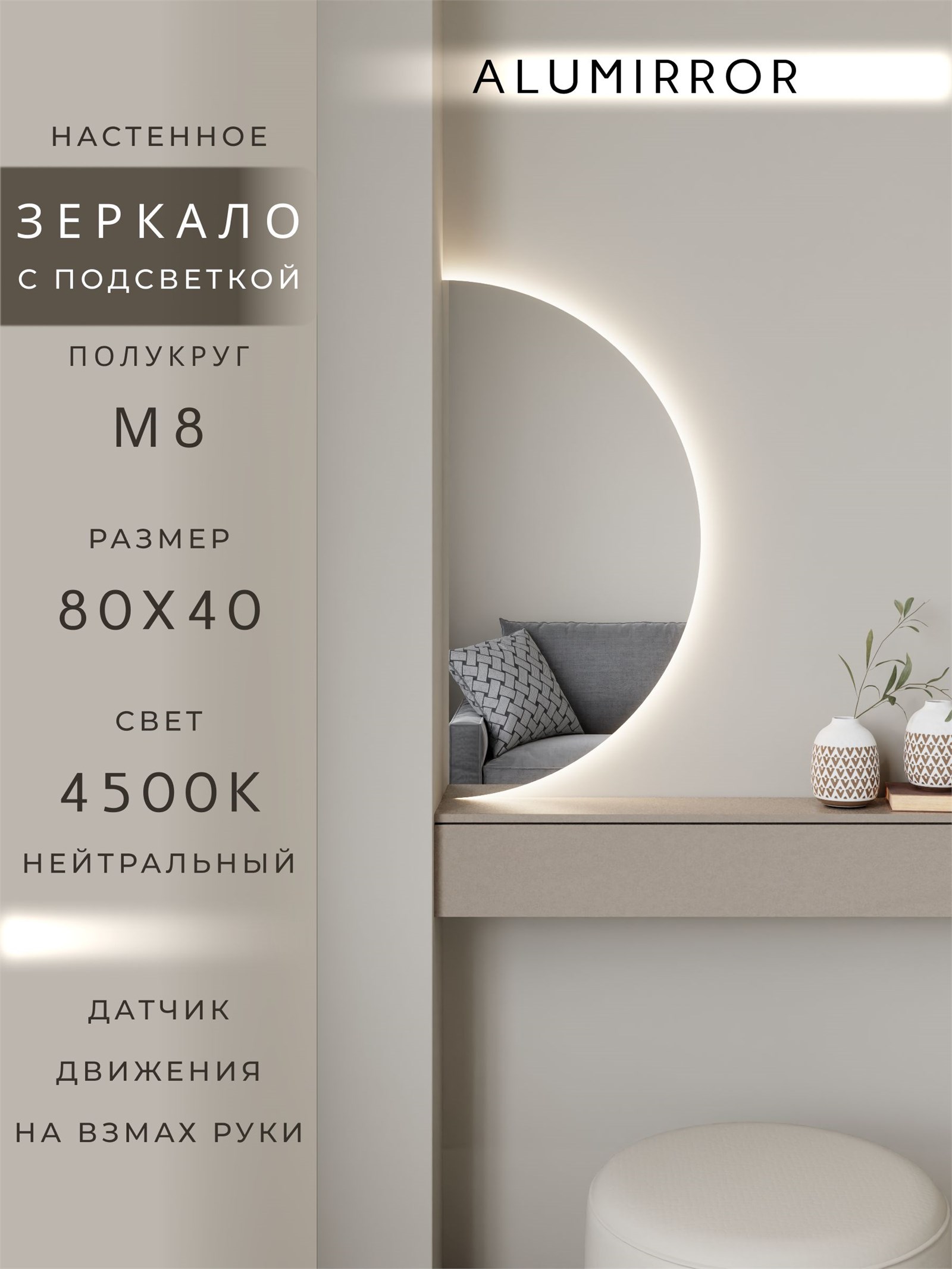 Зеркало настенное 80х40 нейтральный свет 4500К полукруглое с подсветкой М8 ALUMIRROR