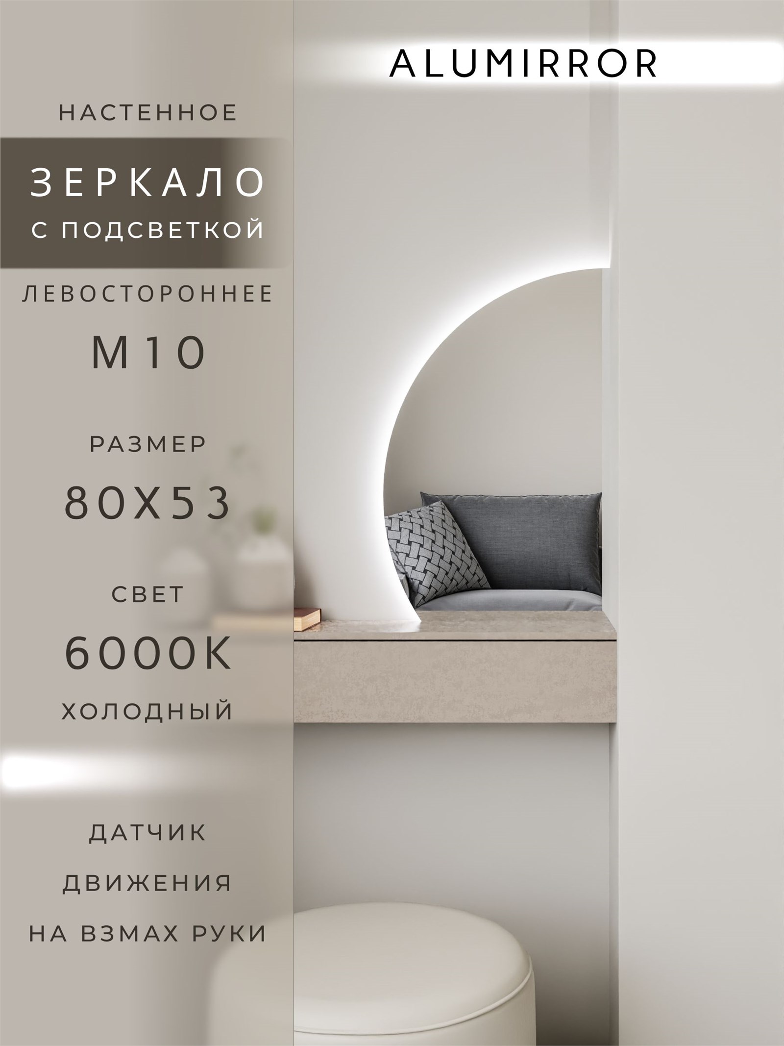 Зеркало настенное 80х53 холоднй свет 6000К фигурное левая сторона с подсветкой М10 ALUMIRROR