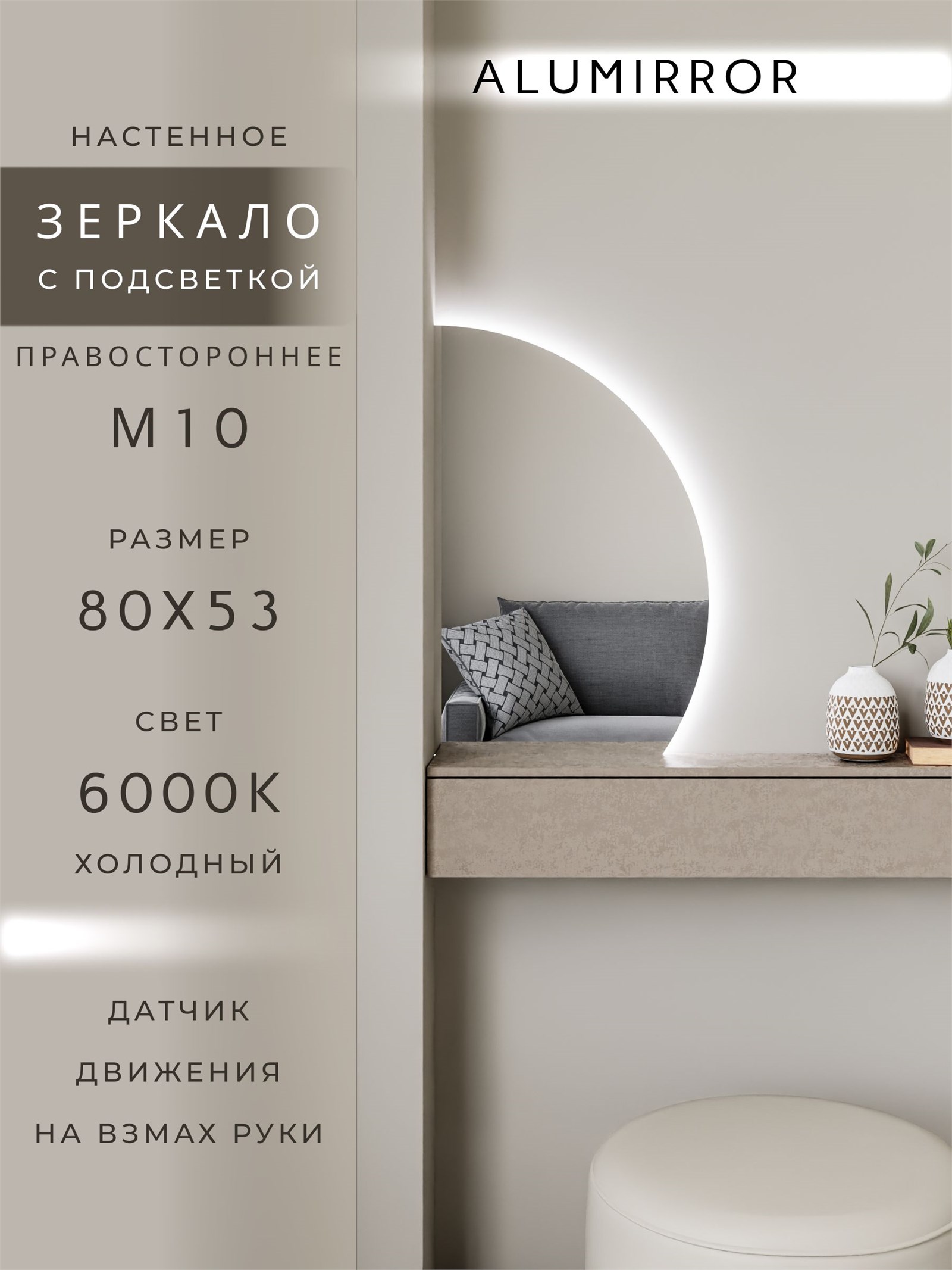 Зеркало настенное 80х53 холоднй свет 6000К фигурное правая сторона с подсветкой М10 ALUMIRROR