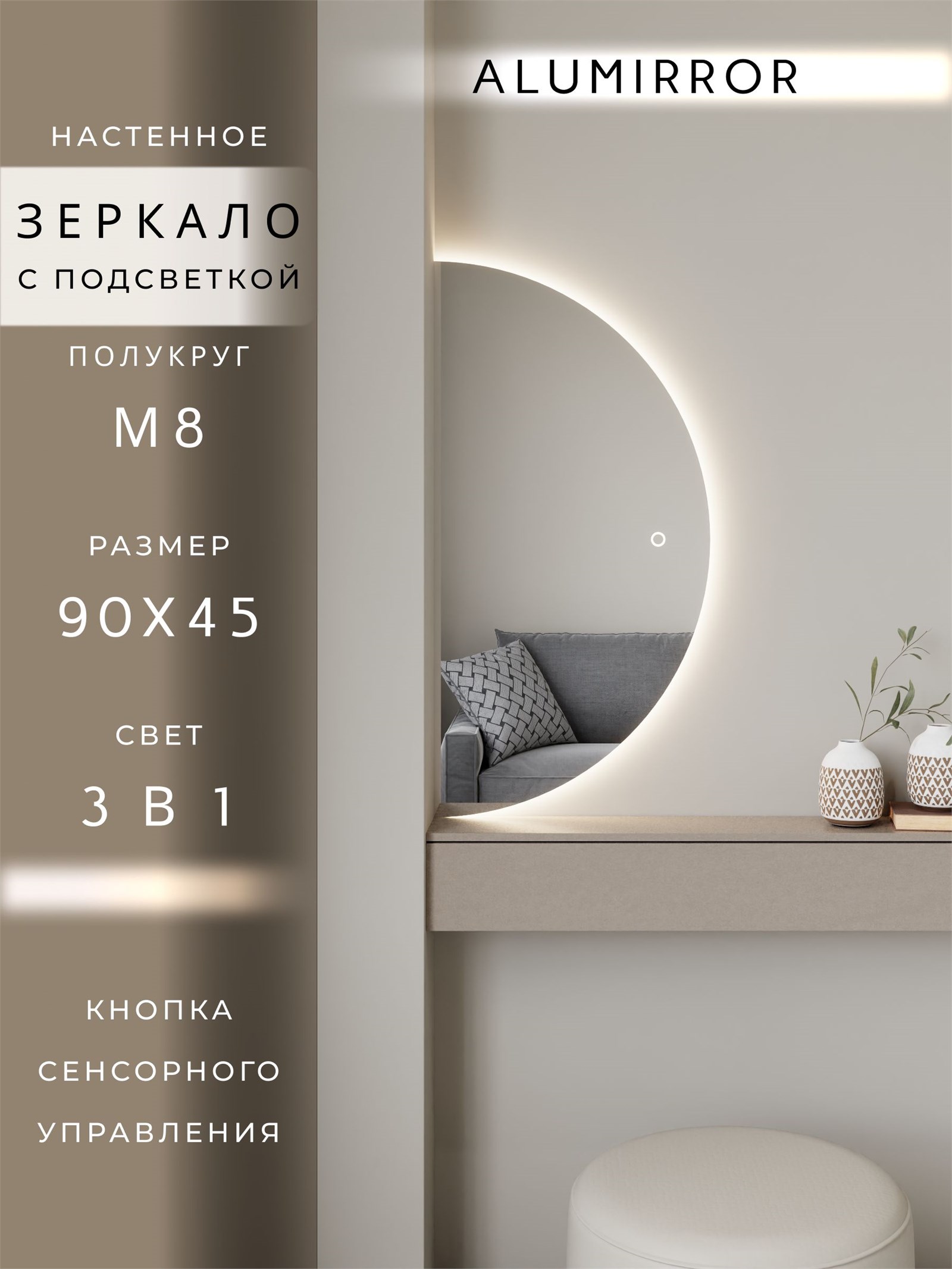Зеркало настенное 90х45 сенсорное полукруглое с подсветкой М8 ALUMIRROR