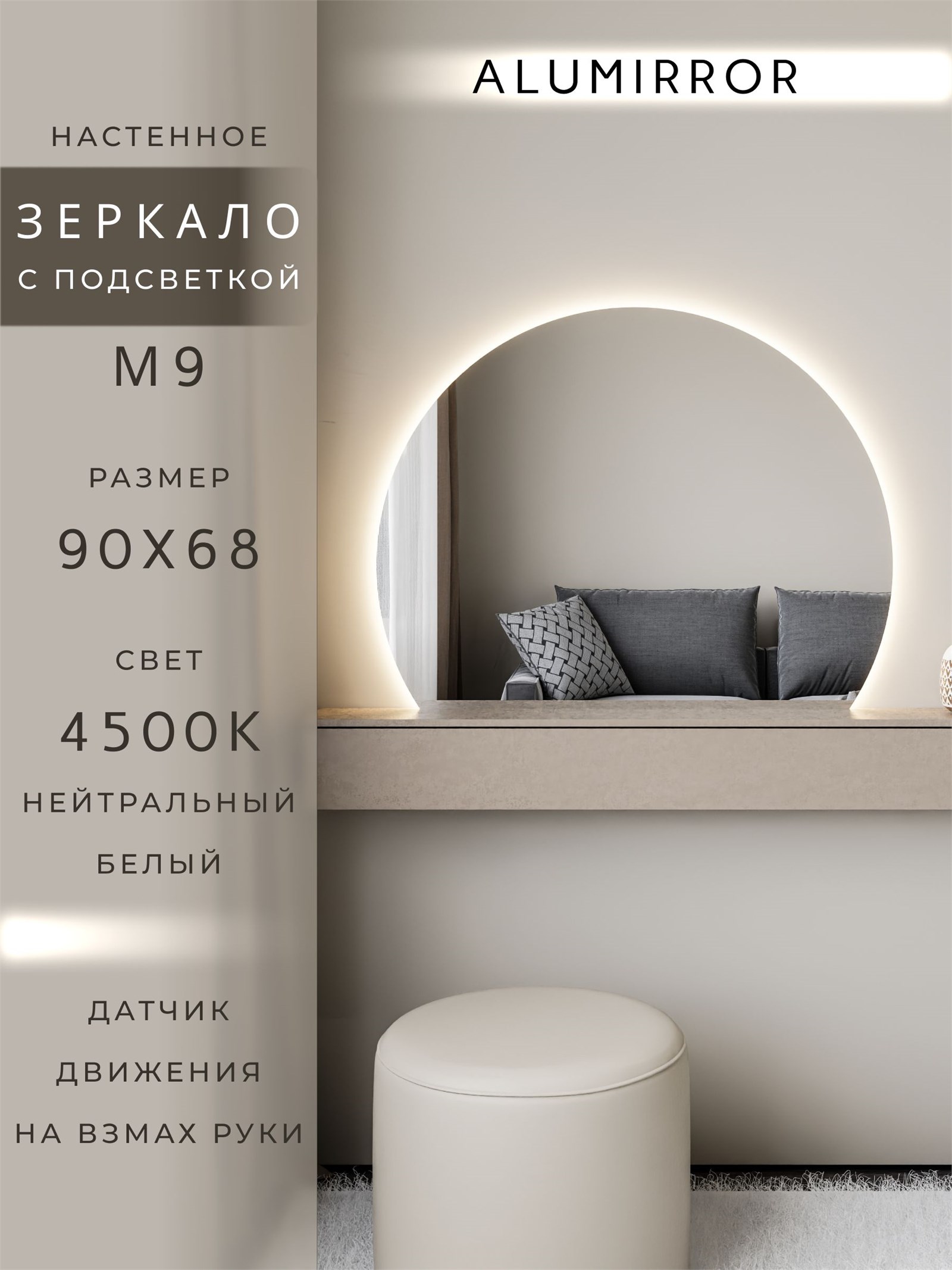 Зеркало настенное 90х68 нейтральный свет 4500К фигурное с подсветкой М9 ALUMIRROR