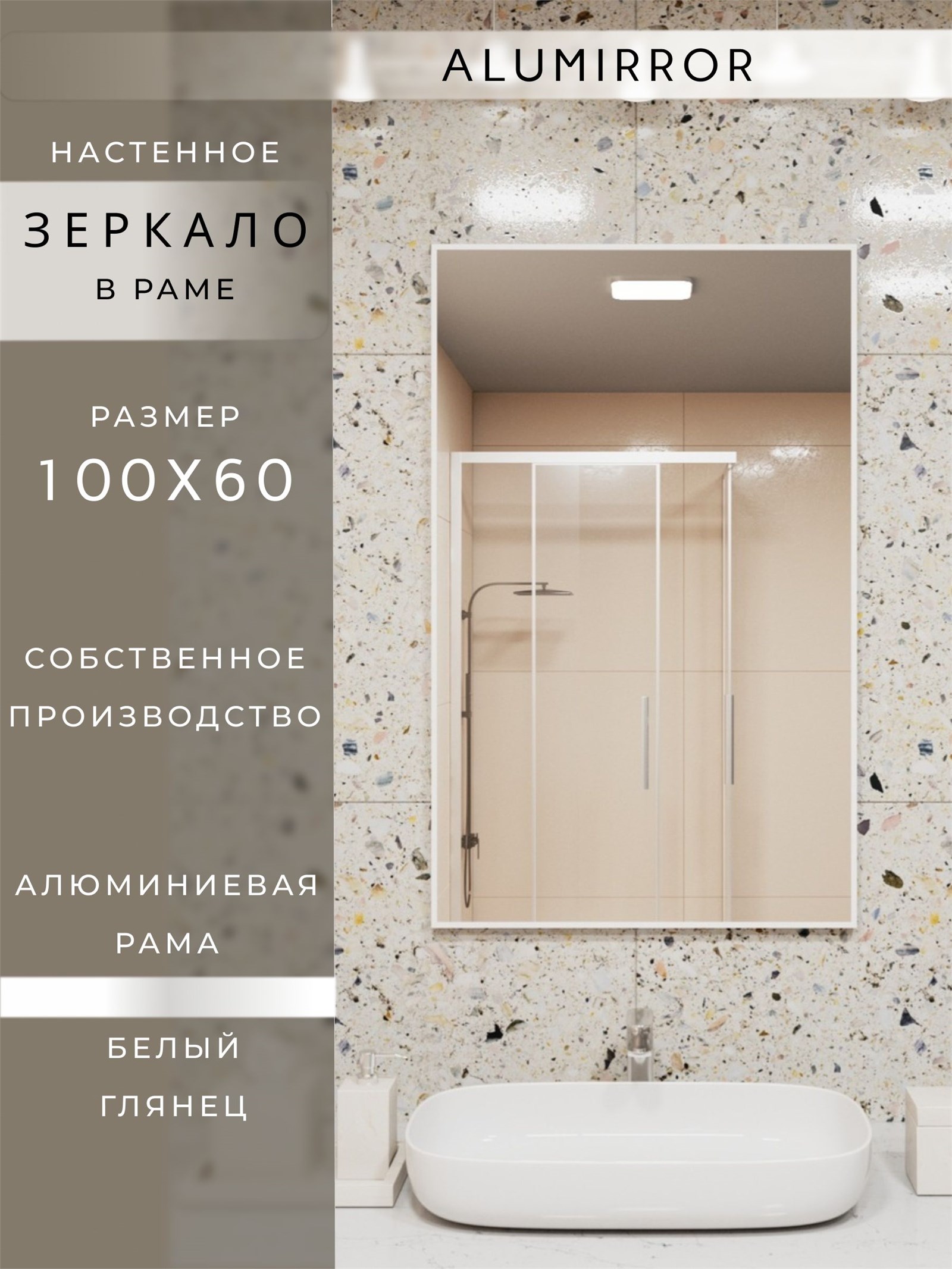 Зеркало в ванную 100х60 см в алюминиевой раме настенное ALUMIRROR