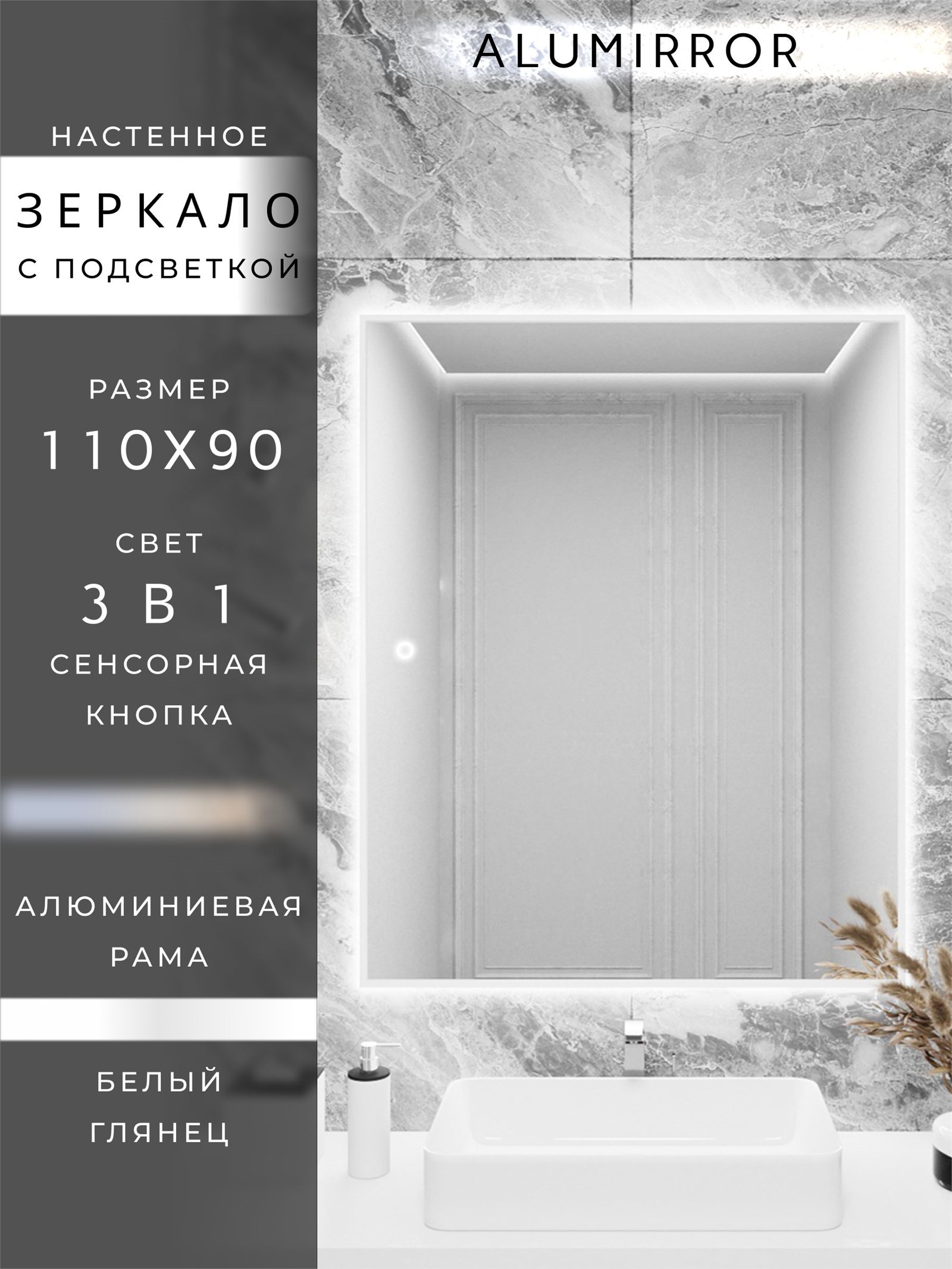 Зеркало в ванную 110х90см с подсветкой сенсорное настенное ALUMIRROR