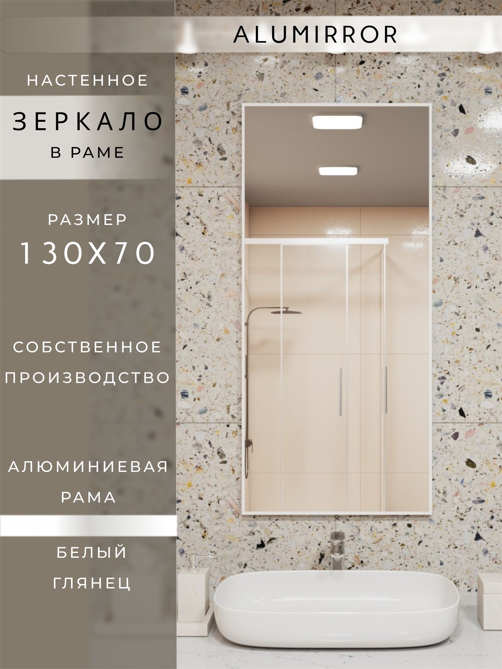 Зеркало в ванную 130х70 см в алюминиевой раме настенное ALUMIRROR